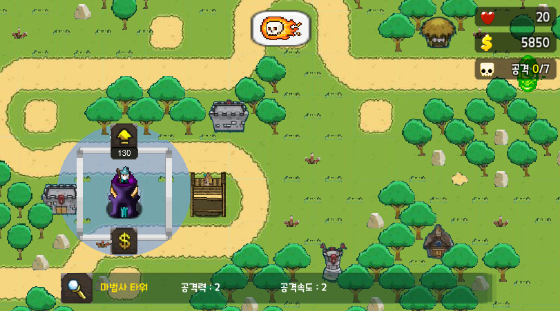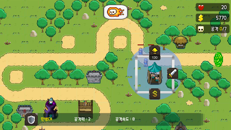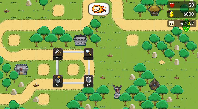 타워의 종류도 많고, 업그레이드 할 때마다 타워의 이미지와 투사체 이미지/효과가 다르기 때문에 흥미롭게