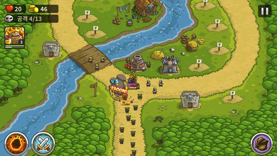 타워 종류 중에 민병대를 설치하면, 병사들이 나타납니다.