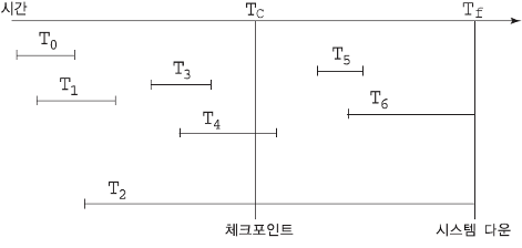 - 시스템이 다운된 시점부터 오래전에 완료된 트랜잭션들은 이미 디스크에 반영되었을 가능성이 크지만, 로그를 사용하더라도 어떤 트랜잭션이 주기억 장치로부터 디스크에 기록되었는지 구분할 수가 없음