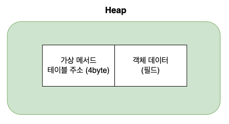 힙에 생성된 객체는 다음과 같이 가상 메서드 테이블의 주소를 가진다.