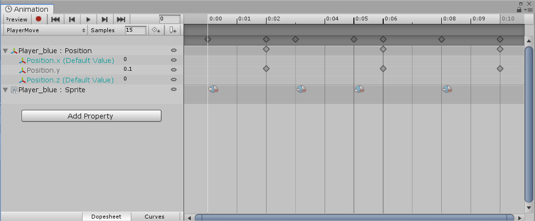 이를 애니메이션으로 만들어줍니다. 플레이어에 Animator를 만들고 Animation을 생성합니다.
