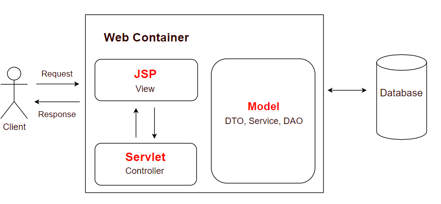 JSP에서 출력(View) 만 처리하며, View 단위와 Controller 단위를 나누어 개발한다.