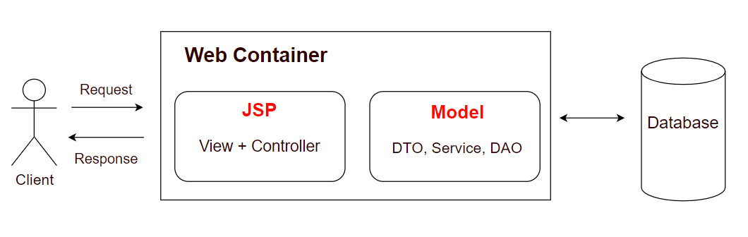 JSP에서 출력과 로직 즉, View와 Controller을 전부 처리하는 경우