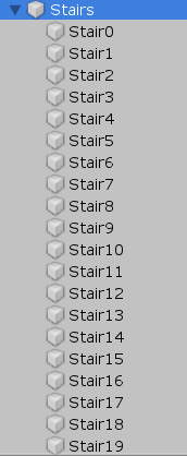 빈 오브젝트 자식으로 계단 오브젝트 20개를 넣었습니다.