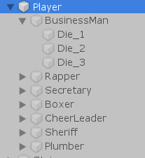Player이라는 빈 오브젝트의 자식들로 캐릭터 종류에 맞게 생성하였습니다.