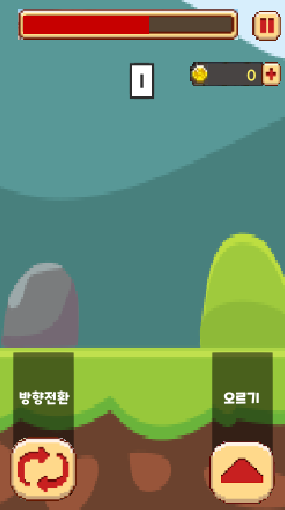 그리고, 이 게임은 오르기 버튼으로 계단을 올라가고,