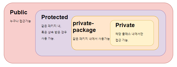 - private : 해당 클래스 내부에서만 접근 허용