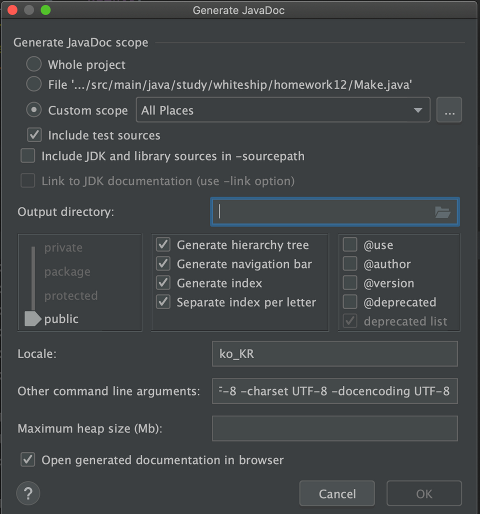 위와 같이 입력 후에 output directory에 경로를 입력해준다.